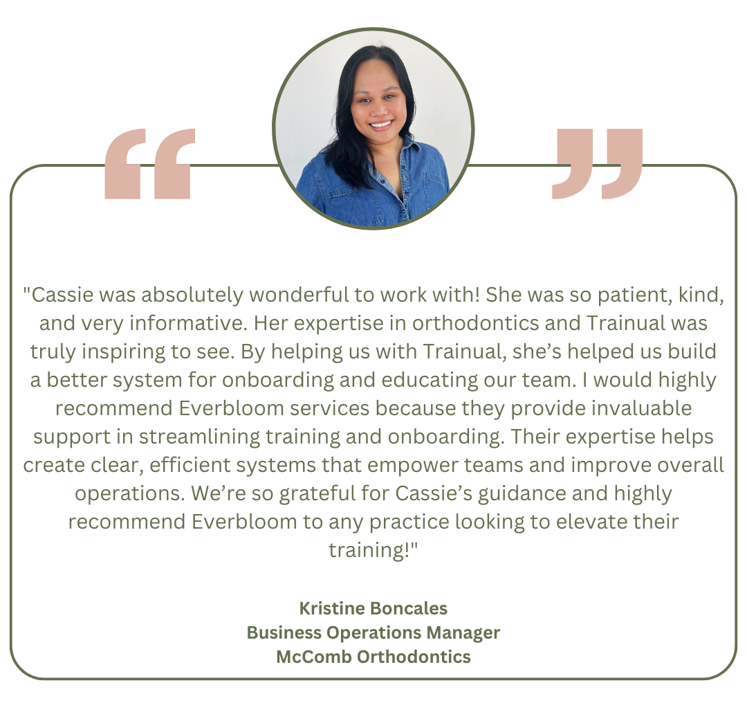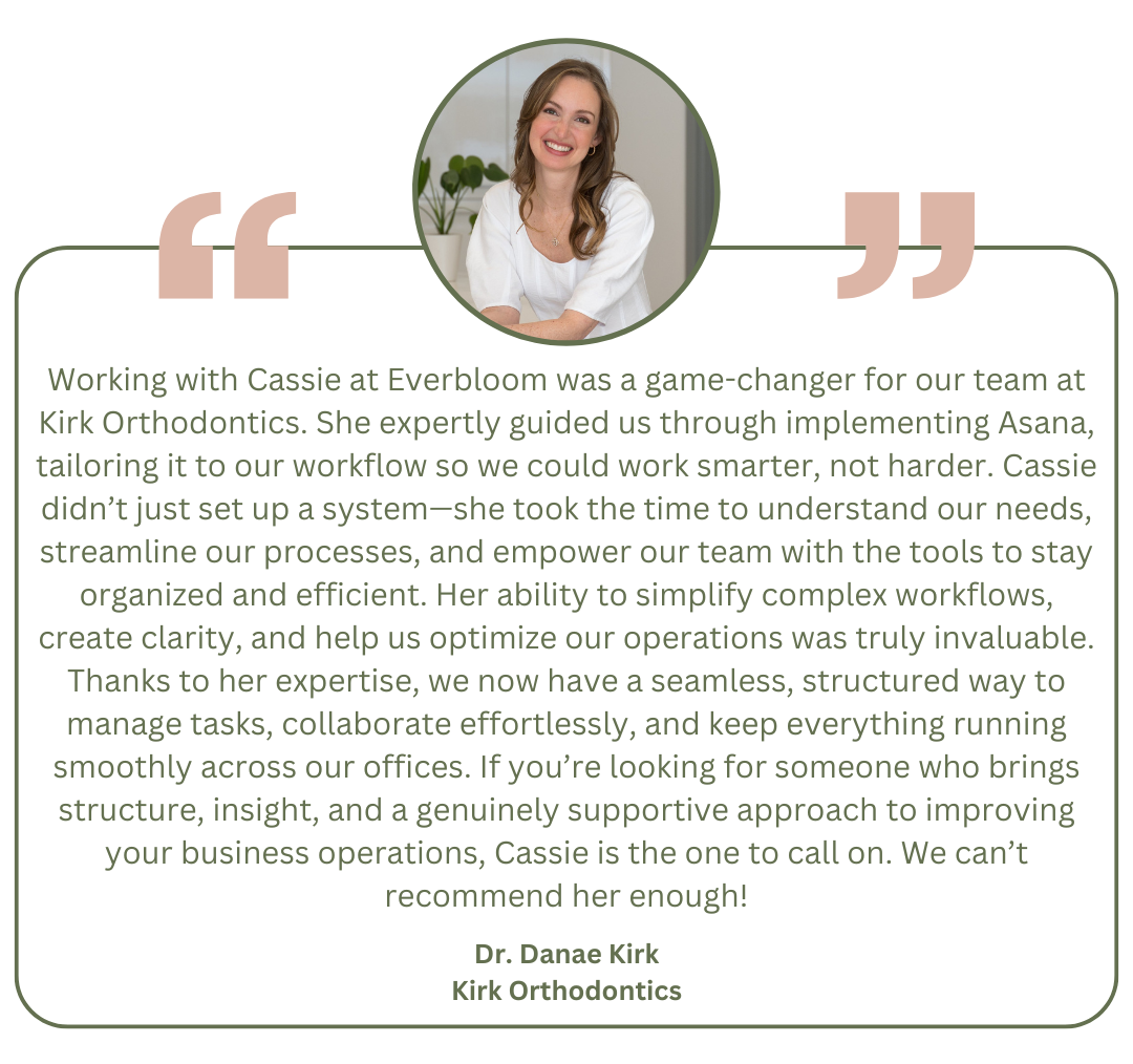 After 22 years in orthodontics, Cassie has seen countless brilliant doctors working 70-hour weeks because their "systems" are sticky notes and hope. Team members quitting because nobody trained them. Practices bleeding money on consultants who advise from the sidelines then disappear. She got tired of watching talented orthodontists drown in operational chaos when they could be thriving instead - And Everbloom was born.